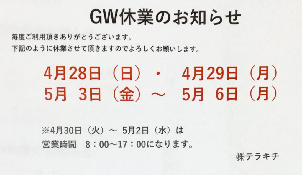 G・W 休業日について