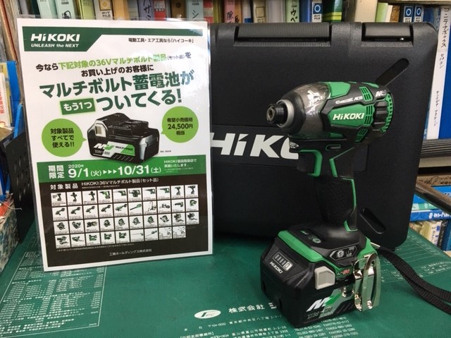 セール対象の36Vバッテリー工具を買っていただくと、36Vマルチボルトバッテリーが1つオマケで付いてきます。